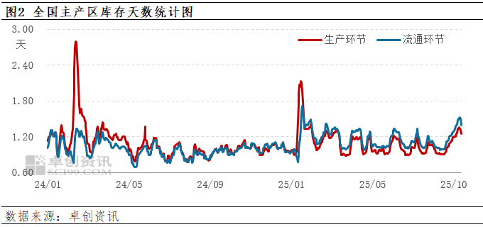 库存:今日全国生产环节平均库存1.25天左右,流通环节库存1.39天左右,库存减少。