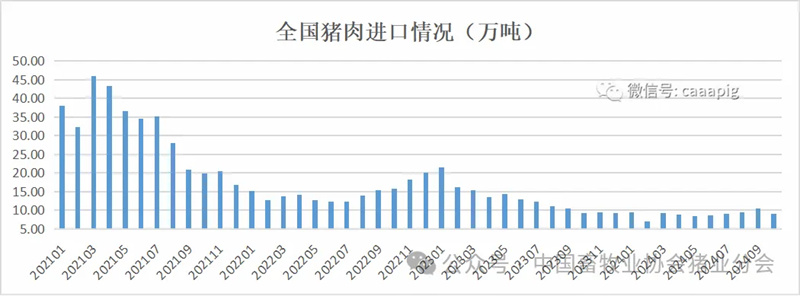 1、2024年10月进口猪肉9.02 万吨,环比下降12.8%,同比下降1.6%。