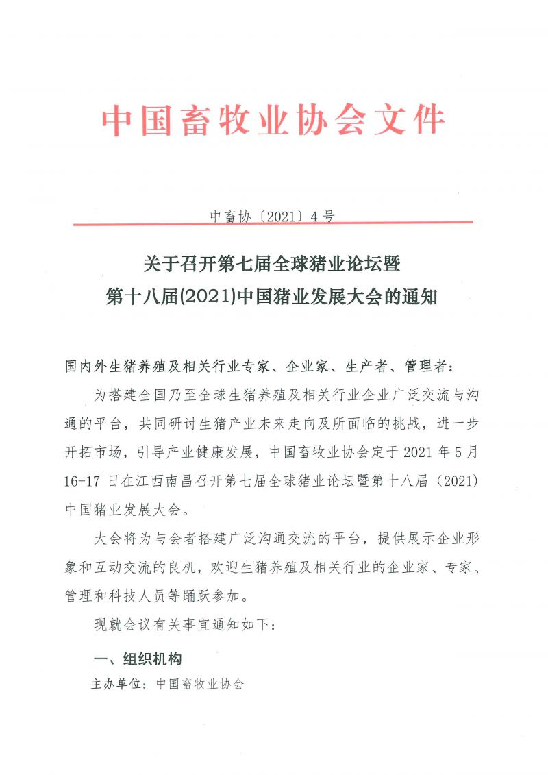 关于召开第七届全球猪业论坛暨第十八届(2021)中国猪业发展大会的通知