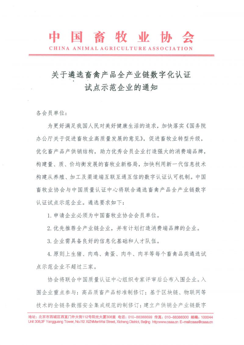关于遴选畜禽产品全产业链数字化认证试点示范企业的通知