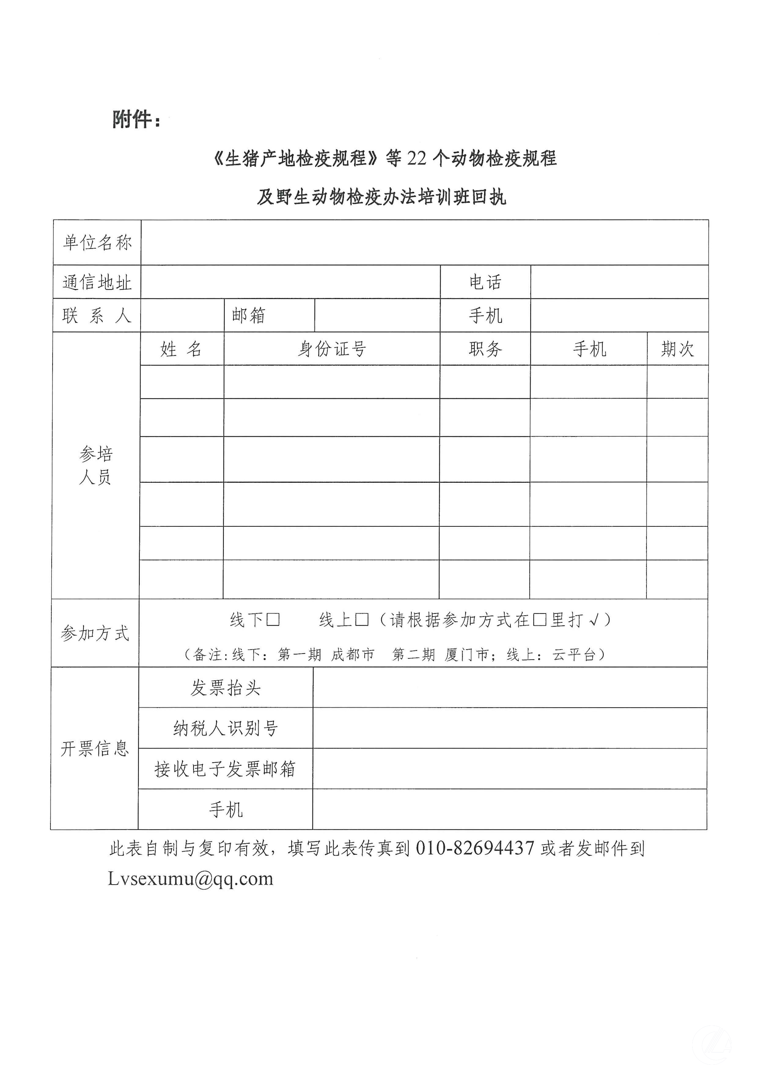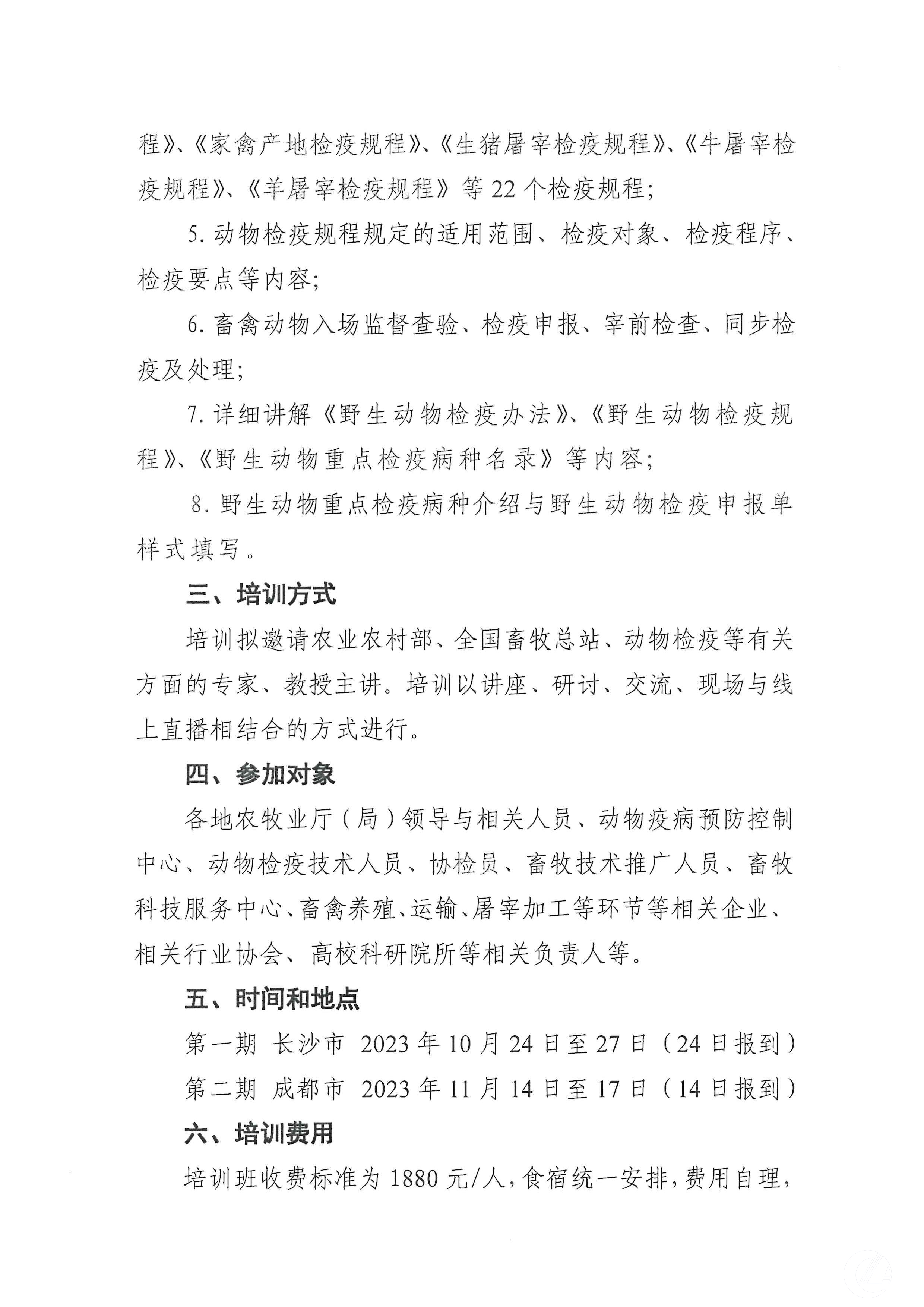 关于举办《生猪产地检疫规程》等22个动物检疫规程及野生动物检疫办法培训班的通知