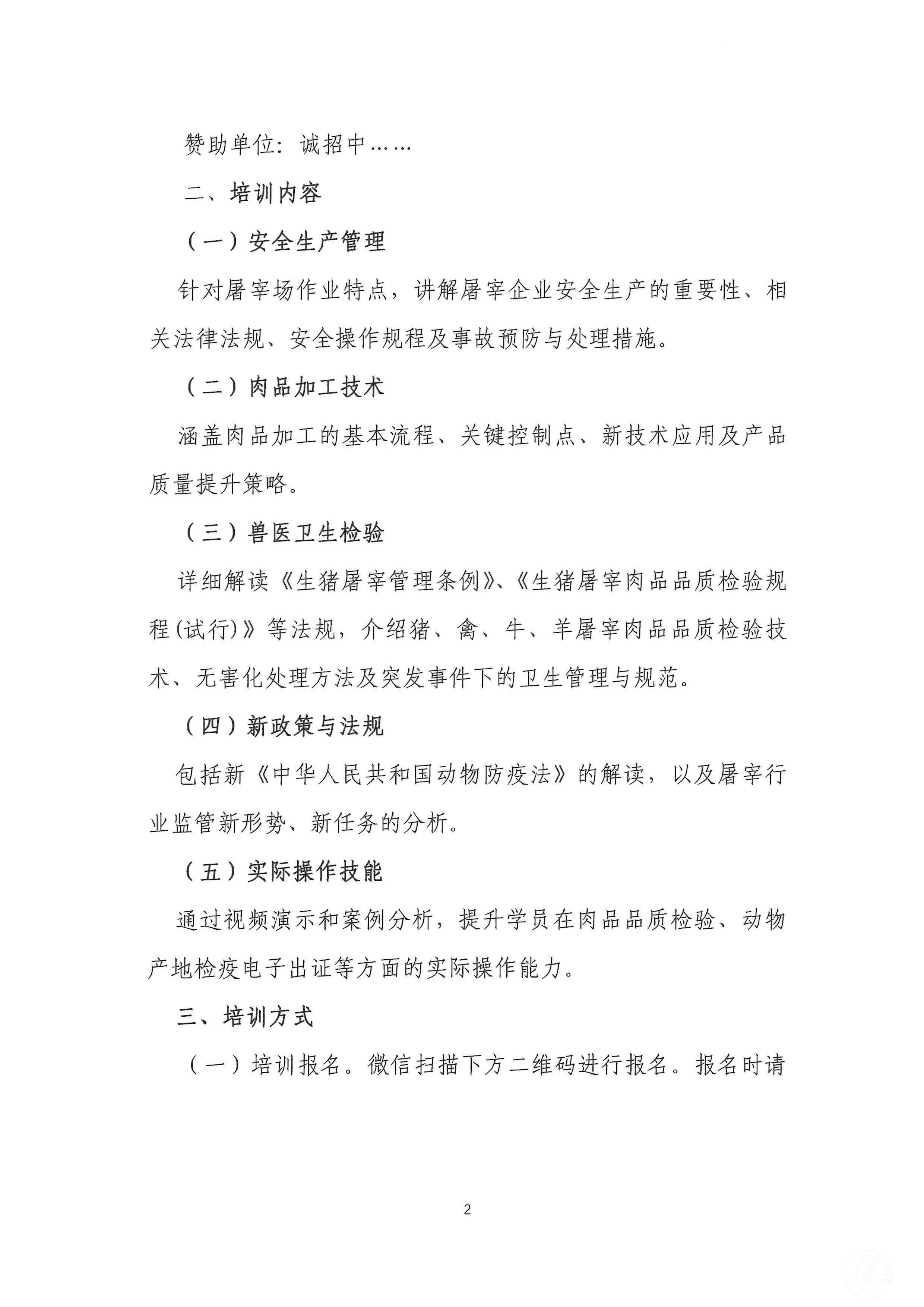 关于举办屠宰企业安全生产肉品加工和兽医卫生检验线上培训班的通知