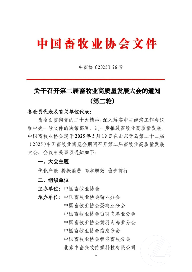 关于召开第二届畜牧业高质量发展大会的通知(第二轮)