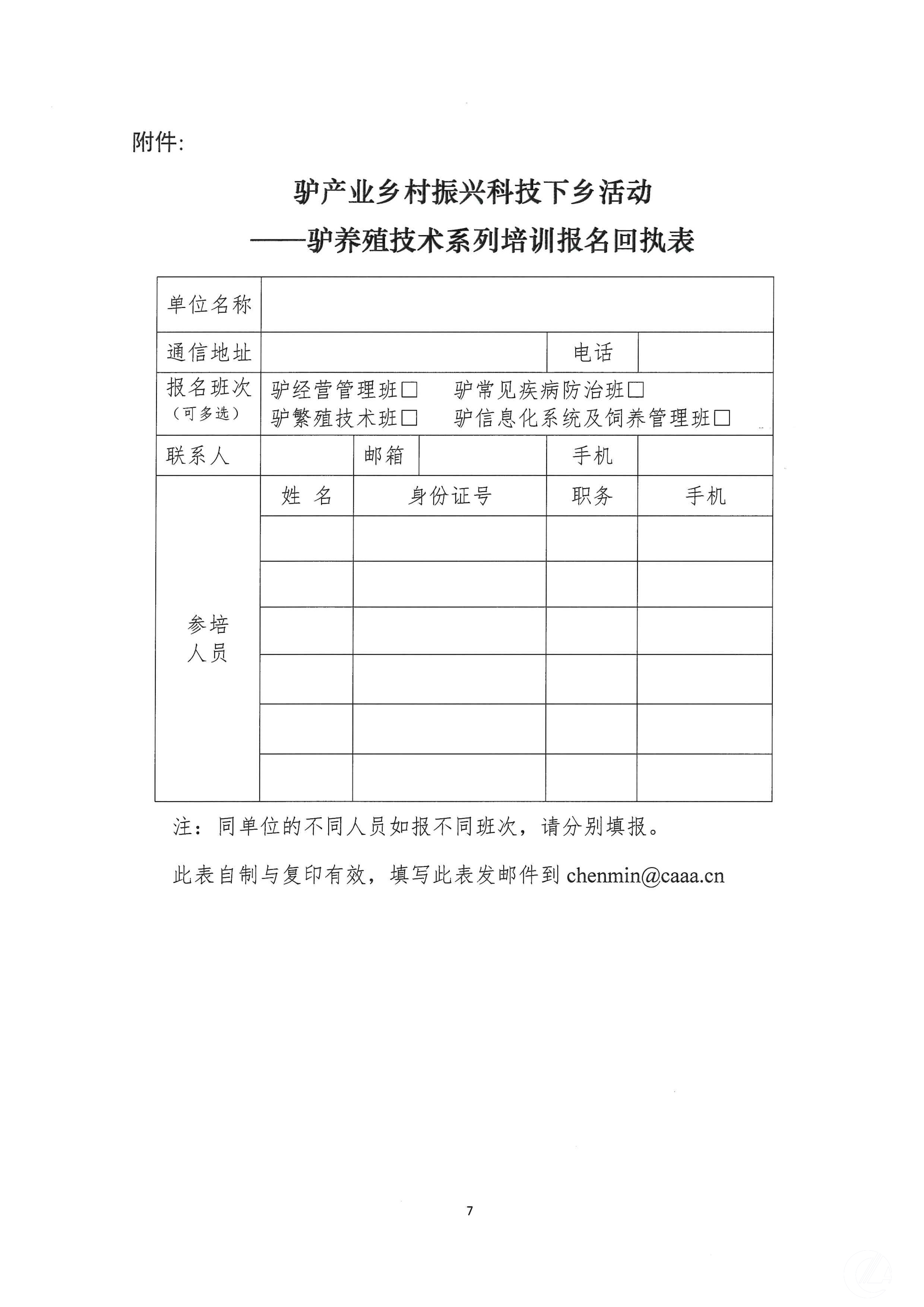 报名表下载:驴产业乡村振兴科技下乡活动-驴养殖技术系列培训报名回执表
