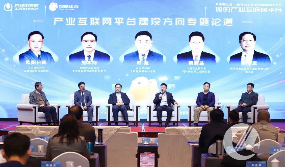 农业农村部大数据发展中心主任韩旭、中国农业科学院饲料研究所二级研究员蔡辉益、中国农业科学院北京畜牧兽医研究所研究员熊本海、中央财经大学互联网研究院副院长、博士生导师欧阳日辉、天津瑞普生物技术股份有限公司董事长李守军,围绕企业融合数字经济、产业互联网平台的搭建模式和盈利机制等进行深入探讨,解读“产业+互联网”的新模式,交流产业数字化新场景,助推数字经济与实体经济的融合发展。